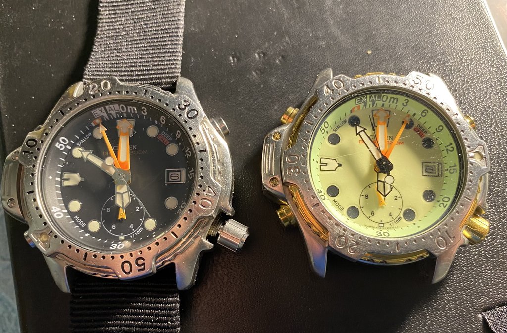 Αυτό το ρολόι πραγματικά το αγάπησα. Δυστυχως πριν λίγα χρόνια σταμάτησε να λειτουργεί. Μου ζήτησαν αρκετά χρήματα για επισκευη και αντι να τα δώσω βρήκα ενα σχεδον καινουριο ιδιο με μαύρο καντράν. Η παγίδα που επεσα ηταν ναι μεν σαν καινουριο αλλα δεν λειτουργουσε το βυθόμετρο που δοκίμασα μετα απο πολύ καιρό οταν βρεθηκα σε θάλασσα. Οχι οτι ειμαι επαγγελματιας δύτης αλλα θέλω ολα να λειτουργούν στην εντελεια σε οτι εχω. Οπως και αν ειναι ομως το εχω το μαυρο. Δεν το πολυφοράω γιατι όσο μεγαλώνω εκτιμησα την ευκολια ενος sleek ρολογιού στο χέρι. Θα αναφερθώ παρακατώ και σε αυτό.
