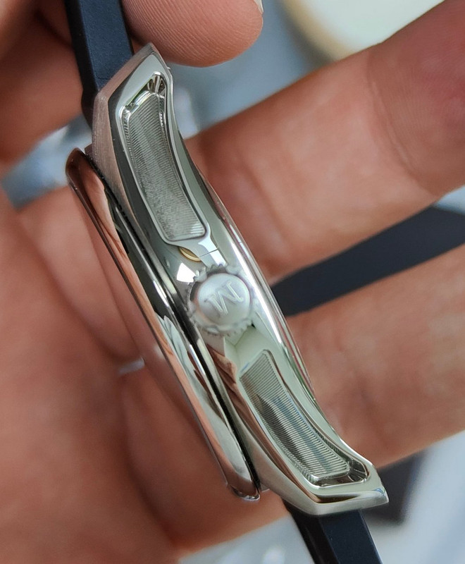 O ρότορας εδώ είναι από βολφράμιο/tungsten (στην έκδοση tourbillon είναι χρυσός), φέρει δε τρία διαφορετικά είδη φινιρίσματος.