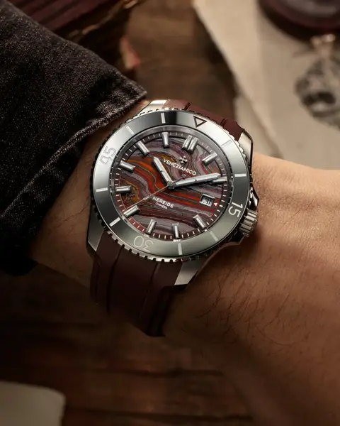 Inside the 42 mm stainless steel case beats the Swiss Made Sellita SW200-1 automatic