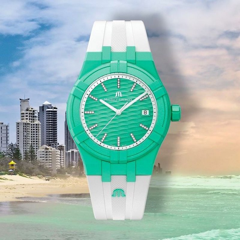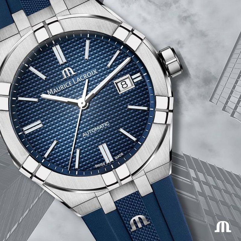 The beautiful and versatile Maurice Lacroix Aikon Automatic. Few brands offer such a good quality-price ratio. Available in two sizes (39 and 42mm) with several Clou de Paris dial colours and a strap/bracelet easy exchange system.
