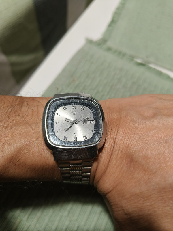 Αυτό φοράω τώρα στην δουλειά...του συγχωρεμένου του πατέρα μου που και ο ίδιος το φορούσε στην δουλειά (μπογιατζής)...1975 περίπου, 50 χρονών ρολόι...