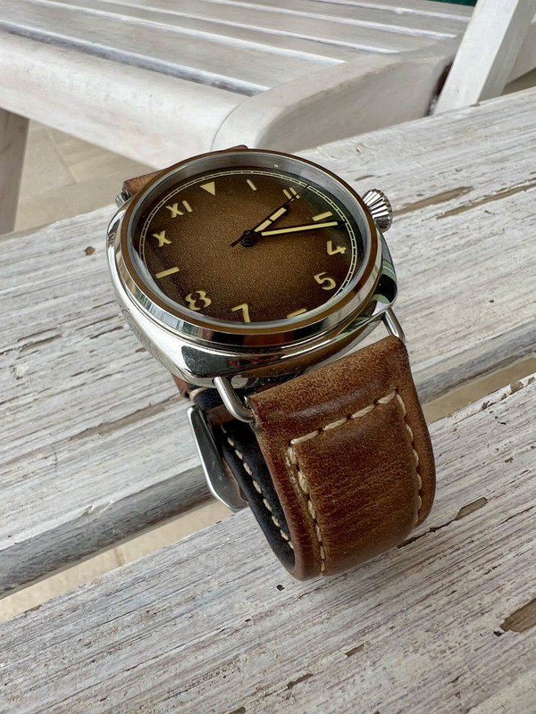 Γιατί όχι στο "ωραιότατο" Κινέζικο "Panerai" που πήρα για να παίζω? Έδιωξα την Πανέρω λόγω μεγέθους 44mm και υπερβολικής χρήσης και μου έμειναν τα λουράκια. Πήρα ένα homage Radiomir στα 42mm που φοράει 24άρια λουριά κι έχω να τα αλλάζω και να τα φοράω μέχρι να τα πετάξω. Ίσως "πετάξω" και το ρολόι, φτηνό είναι. Γιατί όχι?