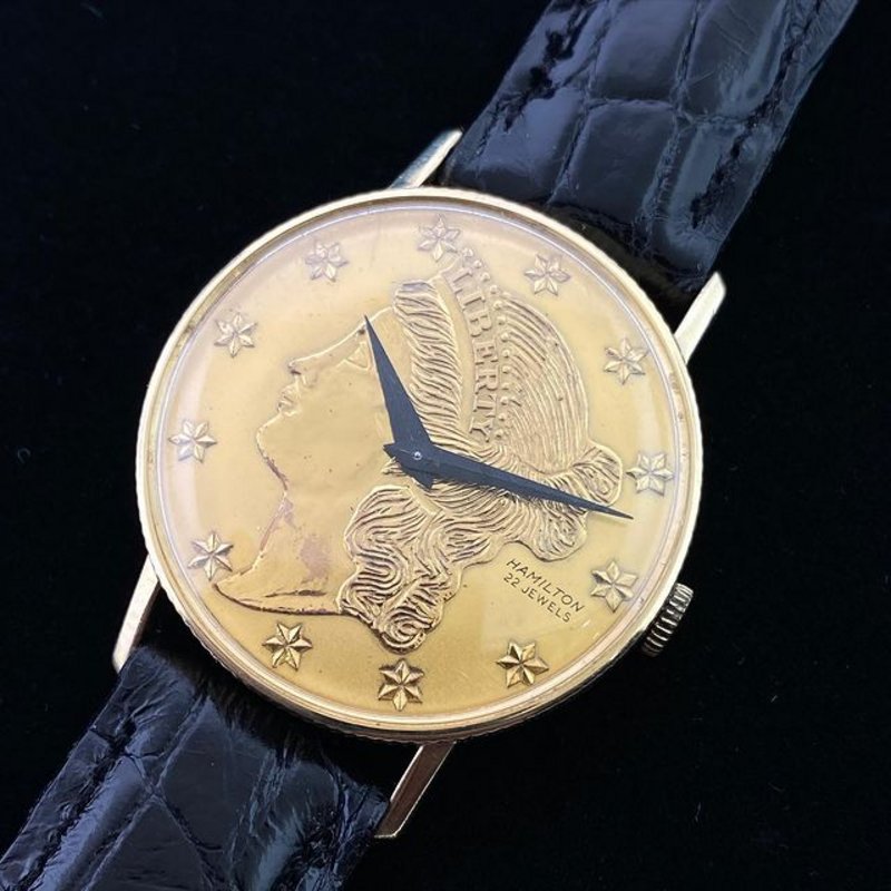 Hamilton Coin Watch in 14k solid gold. The coin watch features the 770 22 jewel movement and was the last model made in America per Rene Rondeau’s