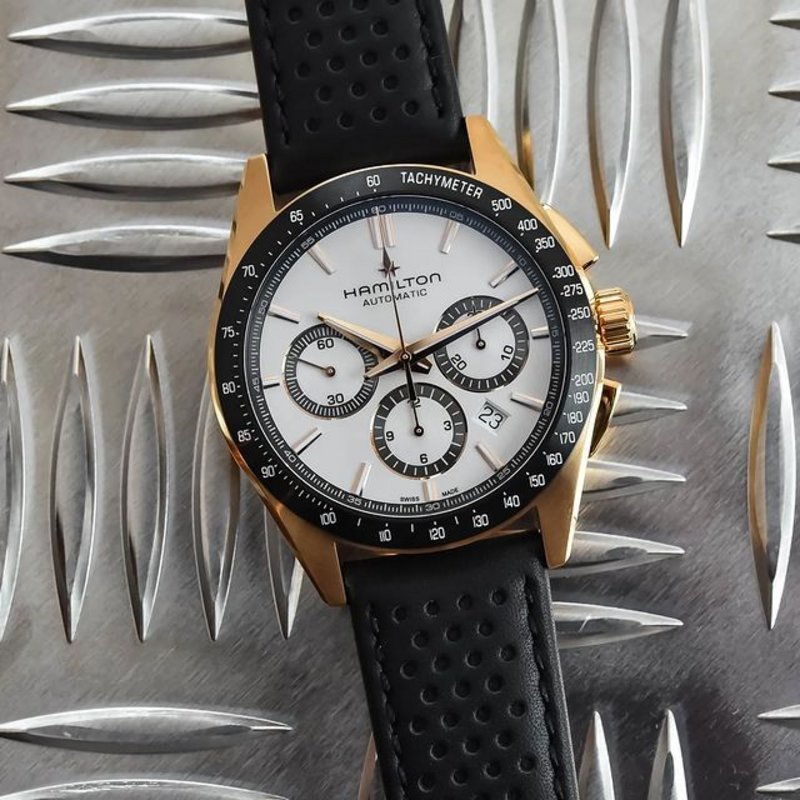 With the new Jazzmaster Performer, @hamiltonwatch has launched a strong collection of sports chronographs. Available in stainless steel, with the option of a gold PVD coating, all Jazzmaster Performers come with a tachymeter bezel and the H-31 automatic chronograph movement