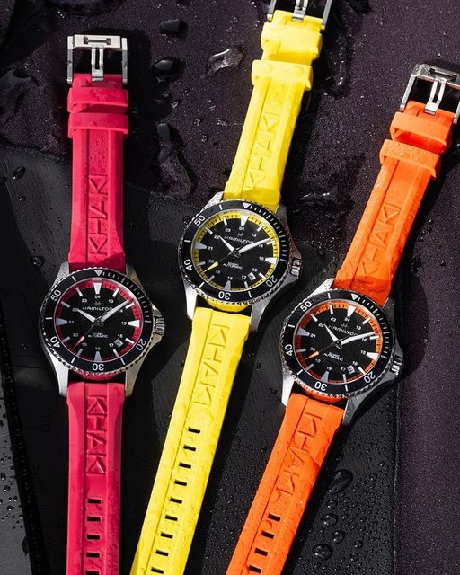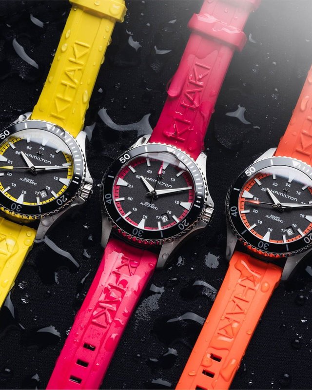 Hamilton Khaki Diver. They come in a very bright yellow, magenta, and orange