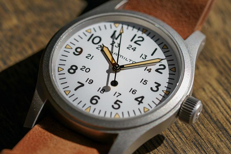 The white-dialed Khaki Field Mechanical is built around a 38mm, bead-blasted 316L stainless steel case. However, it’s worth noting that this edition gets an upgrade on the internals, differentiating them from the 2018 global launch. This watch features Hamilton’s new H-50 caliber and a hand-wound mechanical movement with 80 hours of power reserve. The generous reserve wouldn’t be possible without a slight reduction to the watch’s beat rate, but it’s a worthy tradeoff, particularly for a manually wound watch that can now run without interaction for nearly four full days. This has been done without compromising the core component that has made the Khaki Field Mechanical such a popular option in the community: its sub-$500 price-point.