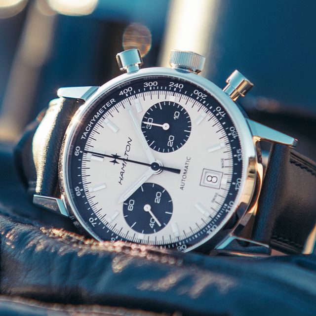 The Intra-Matic Automatic Chronograph celebrates the classic good look of its ancestor, our Chronograph A from 1968, featuring the signature panda design and vintage Hamilton logo.