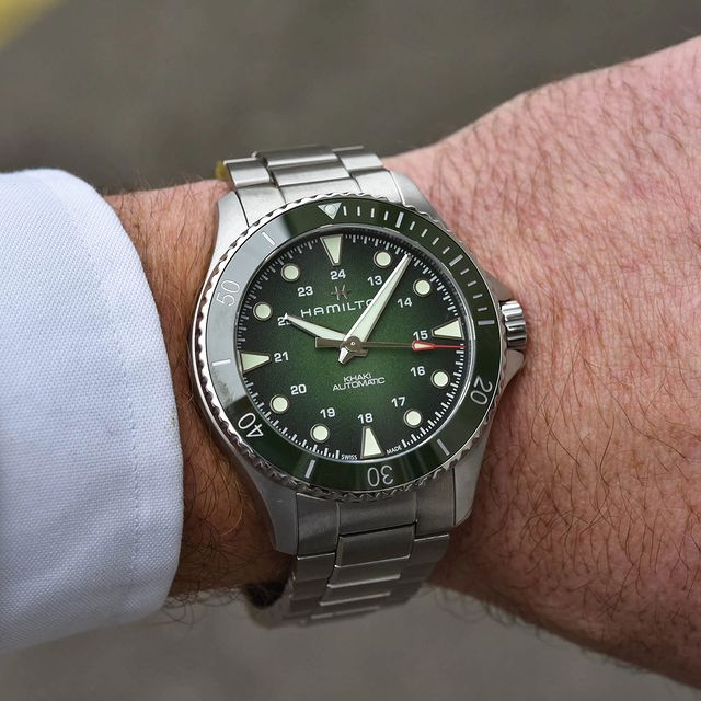 This handsome looking thing is the new mossy green @hamiltonwatch Khaki Navy Scuba Auto. Built upon a solid reputation of robust, military-inspired watches covering air, land and sea, this comes in a sturdy 43mm case with a 300m water resistance