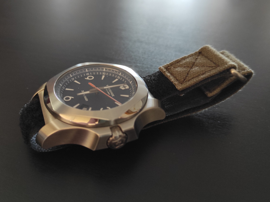 Σκληρή υφή (όσο και τα πιο σκληρά ΝΑΤΟ που έχω δοκιμάσει και πολύ ποιοτικό velcro, δεν το βλέπω να διαλύεται πολύ σύντομα. Τα κύρια πλεονεκτήματά του είναι δύο, το εύκολο βάλε-βγάλε και το ότι μπορείς να το ρυθμίσεις ακριβώς στο πόσο σφιχτό ή χαλαρό το θέλεις. Φυσικά δεν προσφέρει αυξημένη ασφάλεια, όπως τα ΝΑΤΟ. Αρκετά άνετο, πήρε εύκολα το σχήμα του καρπού και δεν ενοχλεί πάρα πολύ, αλλά σίγουρα είναι αρκετά σκληρό. Το βγάλε είναι πανεύκολο, στο βάλε θέλω λίγα παραπάνω δευτερόλεπτα και έξτρα προσοχή μη μου φύγει το ρολόι από το χέρι, ίσως να είναι θέμα συνήθειας.