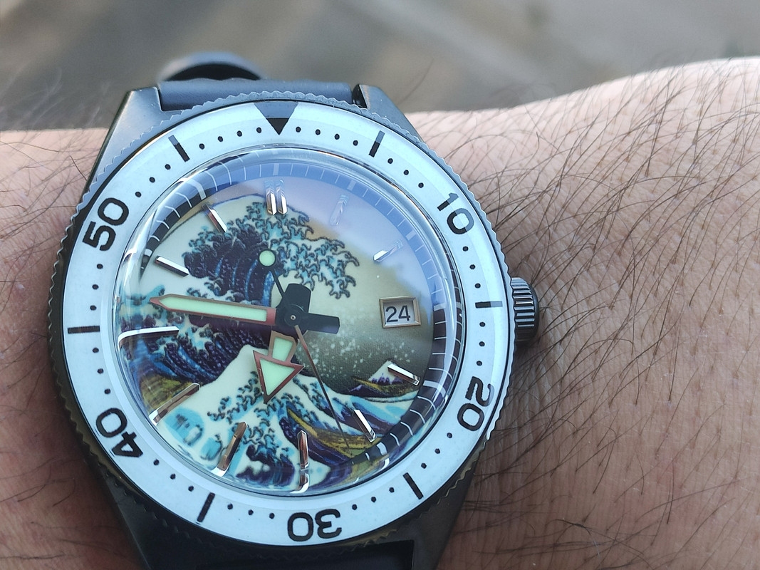 Το dial αυτό είναι εκπληκτικό. Είναι το λεγόμενο "Great Wave off Kanagawa" και είναι γνωστό έργο της Ιαπωνικής κουλτούρας από το 19ο αιώνα.