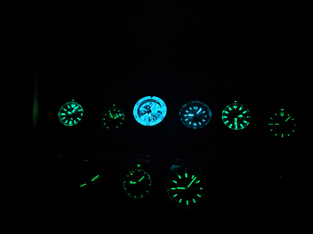 To 5αρι seiko (κάτω δεξιά) είναι αρκετά μέτριο, θέλει περισσότερο φως για να "φορτίσει" το lume του και πάλι δεν κρατάει και πολύ.