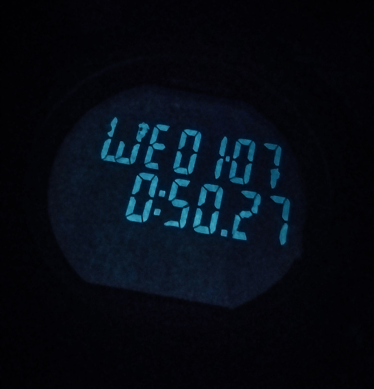 Μια φώτο από το Traser ρολόι μου σε απόλυτο σκοτάδι, τραβηγμένη με κινητό.