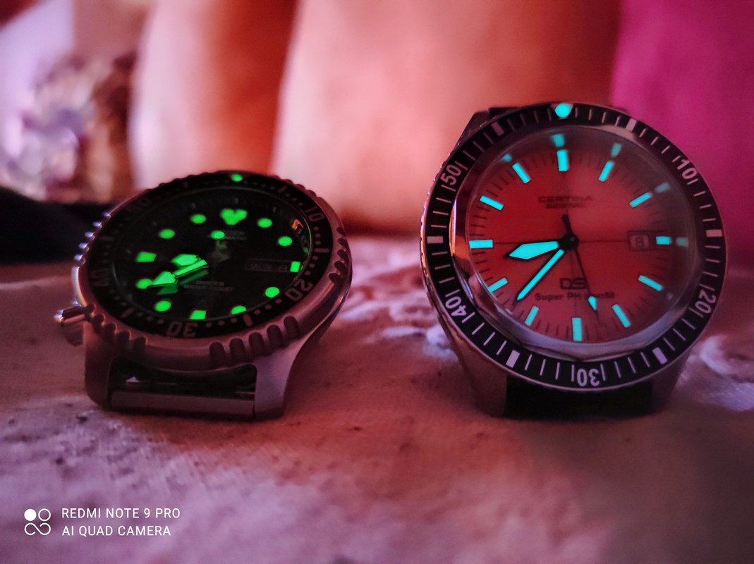 Χαίρομαι που βγαίνει και την εικόνα. Δεν ξέρω τι σκατά έχουν βάλει για lume στον δείκτη 0 του bezel, αλλά φωτάει σαν παρτούζα πυγολαμπίδων σε σχέση με το υπόλοιπο ρολόι.  :D :D