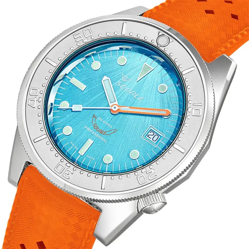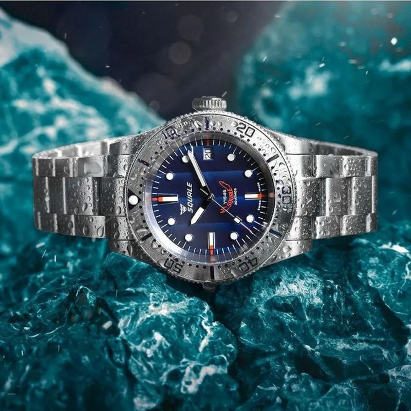 Introducing the Squale 1545 Steel Blue Rubber. Crafted for exploration with its 40mm diameter, 30 ATM water resistance, and a 20mm strap width