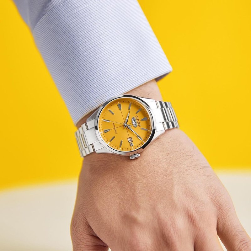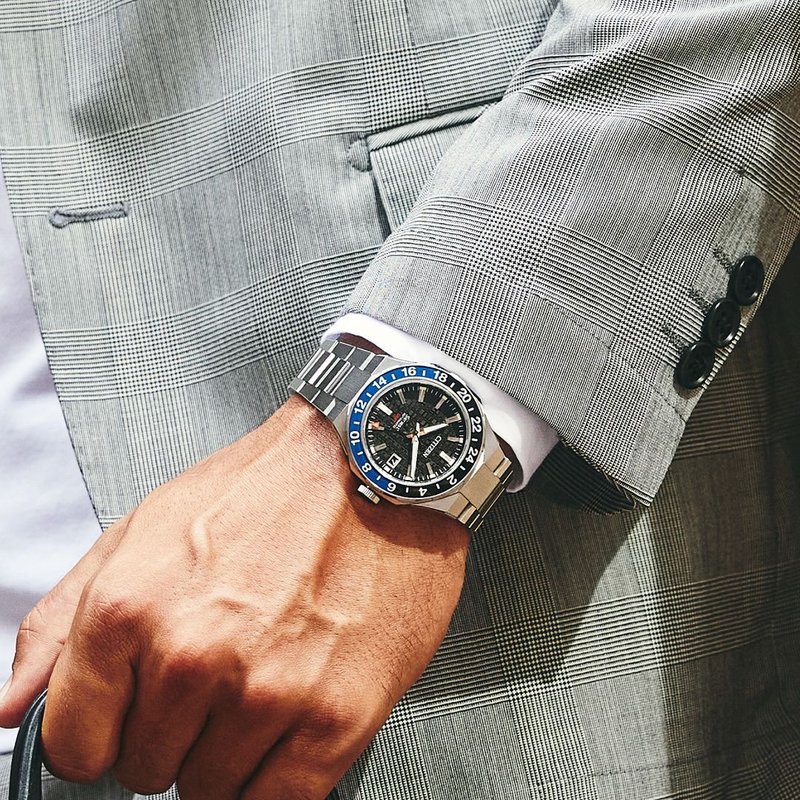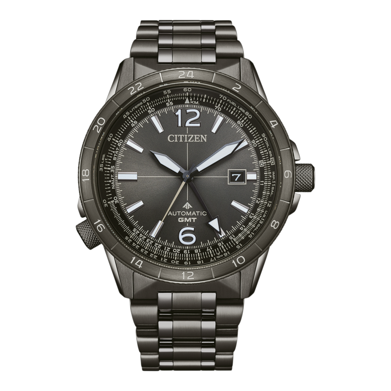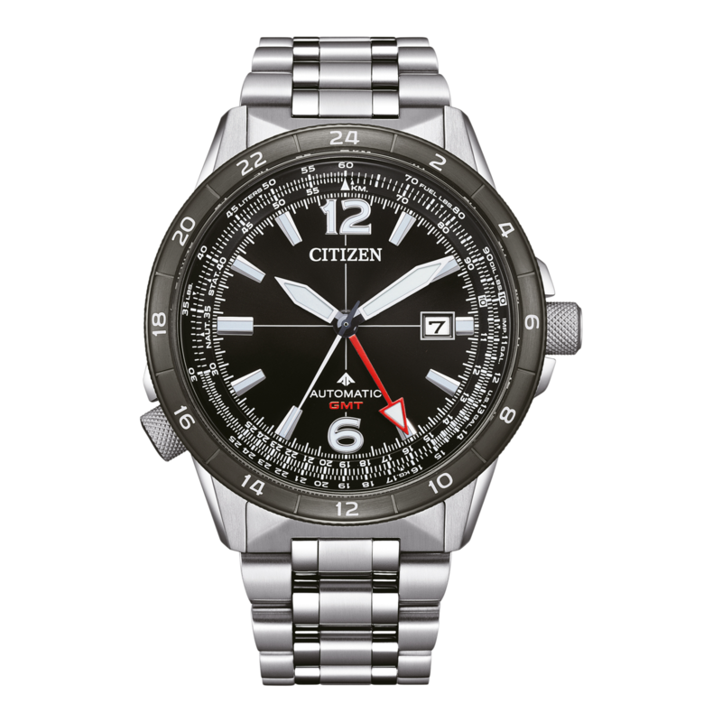 The Citizen Promaster Mechanical GMT measures 44.5 millimeters in diameter and 12.7 millimeters in height and can withstand pressures of up to 20 bar. The sapphire crystal has an anti-reflective coating. The reference NB6046-59E made of stainless steel