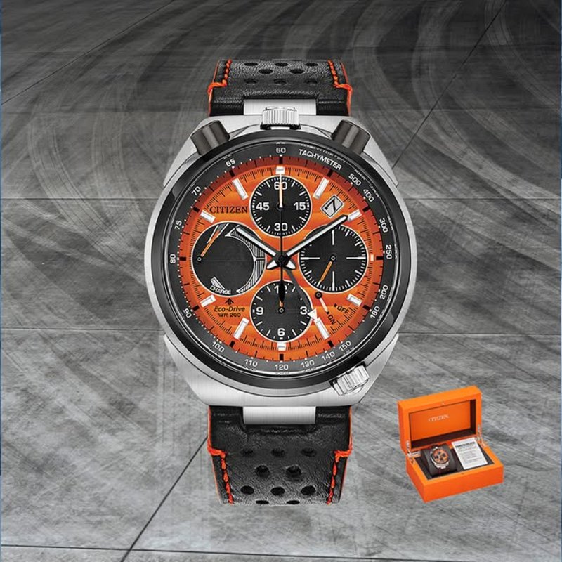 The Limited Edition Orange Promaster Bullhead Racing Chronograph is a high-performance timepiece