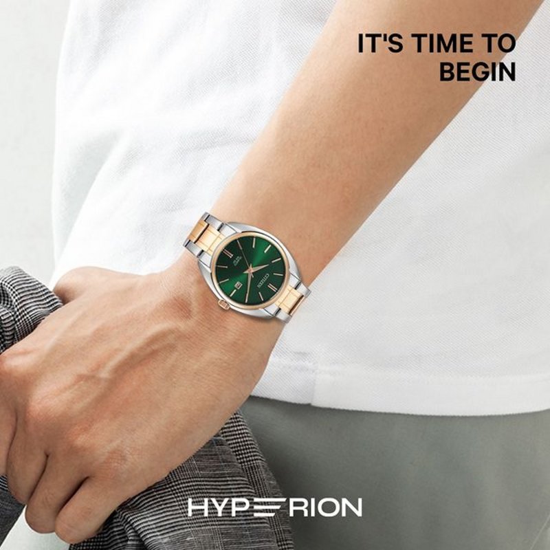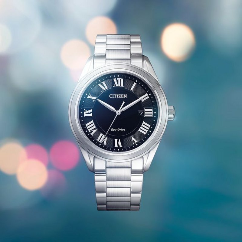 For a polished look, the three-hand Arezzo offers a black dial with silver-tone roman numerals, and is sustainably powered by any light with Citizen Eco-Drive technology. Order before the 21st to ensure delivery before Christmas. Model: AW1690-51E