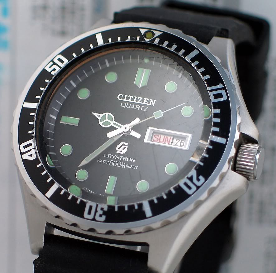 Citizen’s first waterproof watch was the Parawater, which was released in 1959. Seiko, on the other hand, did not release one until 1965.Over 100 Citizen Parawaters were dropped into the ocean in buoys as part of an effort to research ocean currents and test the waterproofness of the watch. Each buoy also had a letter written in English by Japanese schoolchildren – intended to be read by their North American “friends”. Over the next few decades, Citizen had continued to produce some very high quality dive watches such as the 150m/600m Crystrons.And Citizen continued to follow. During the 80’s and 90’s they pushed as far as 1300m!