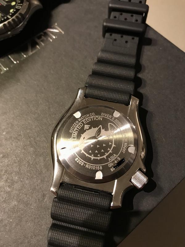 The case, in stainless steel with ion-plated black, measures 45mm. It has an AR-coated sapphire crystal and it is water resistant to 200 meters.
