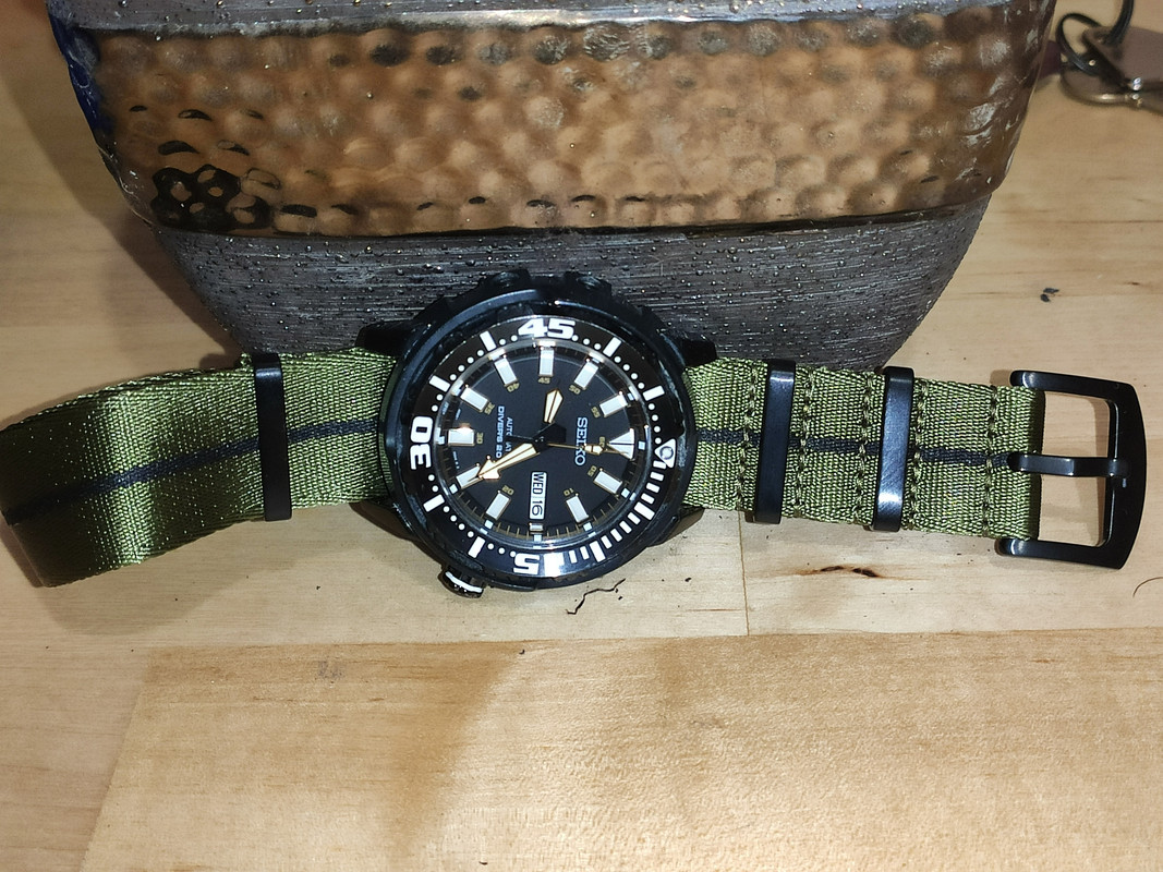 Σε αυτή τη φωτογραφία δίπλα σε ένα single pass nato από cheapest nato straps που έχω πρόχειρο νομίζω φαίνεται η διαφορά στη ποιότητα. Είναι seatbelt nato και τα 2 αλλά ο Κινέζος είναι ανώτερος στην αφή. Επίσης έχει ωραίο χοντρό buckle και η pvd επίστρωση είναι ομοιόμορφη.