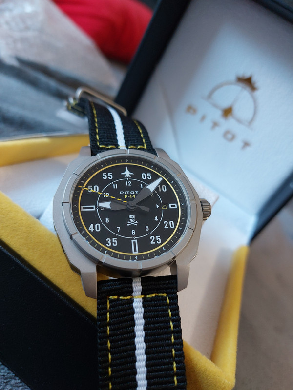 Μερικοί το βρήκατε όπως βλέπω! Είναι λοιπόν το 1ο ρολόι της Pitot, εμπνευσμένο απο το F-14 Tomcat και το συγκεκριμένο είναι με τα χρώματα και τα διακριτικά της VF 84 "Jolly Rogers". https://en.m.wikipedia.org/wiki/VF-84_(1955%E2%80%9395)