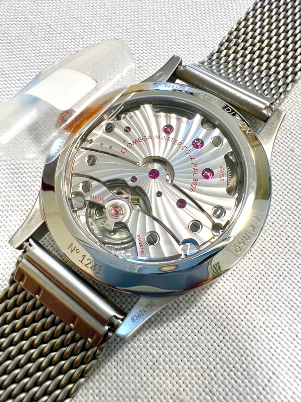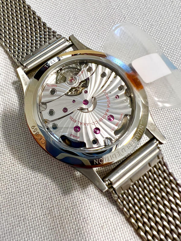 Manual-winding movement with Co-Axial escapement. Certified Master Chronometer, approved by METAS, resistant to magnetic fields reaching 15,000 gauss. Small Seconds display at 6H. Free-sprung balance with silicon balance spring, two barrels mounted in series. Rhodium plated finish with Geneva waves in arabesque.