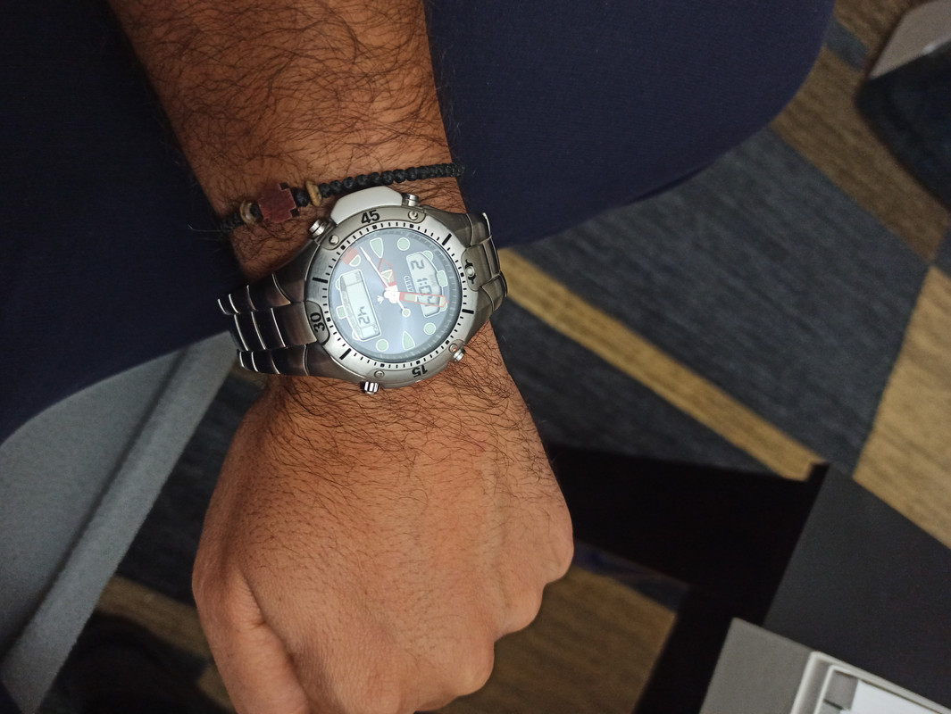 (Κάντε κλικ εδώ να εμφανιστεί η φωτογραφία.)(Κάντε κλικ εδώ να εμφανιστεί η φωτογραφία.)Τι βρίσκει κανείς στα πιο απίθανα μέρη. Ένα από τα πιο must καταδυτικά τις citizen. Πολύ ωραίο μπρασελέ σαν αίσθηση είναι πολύ ανατομικό δένει στον καρπό.