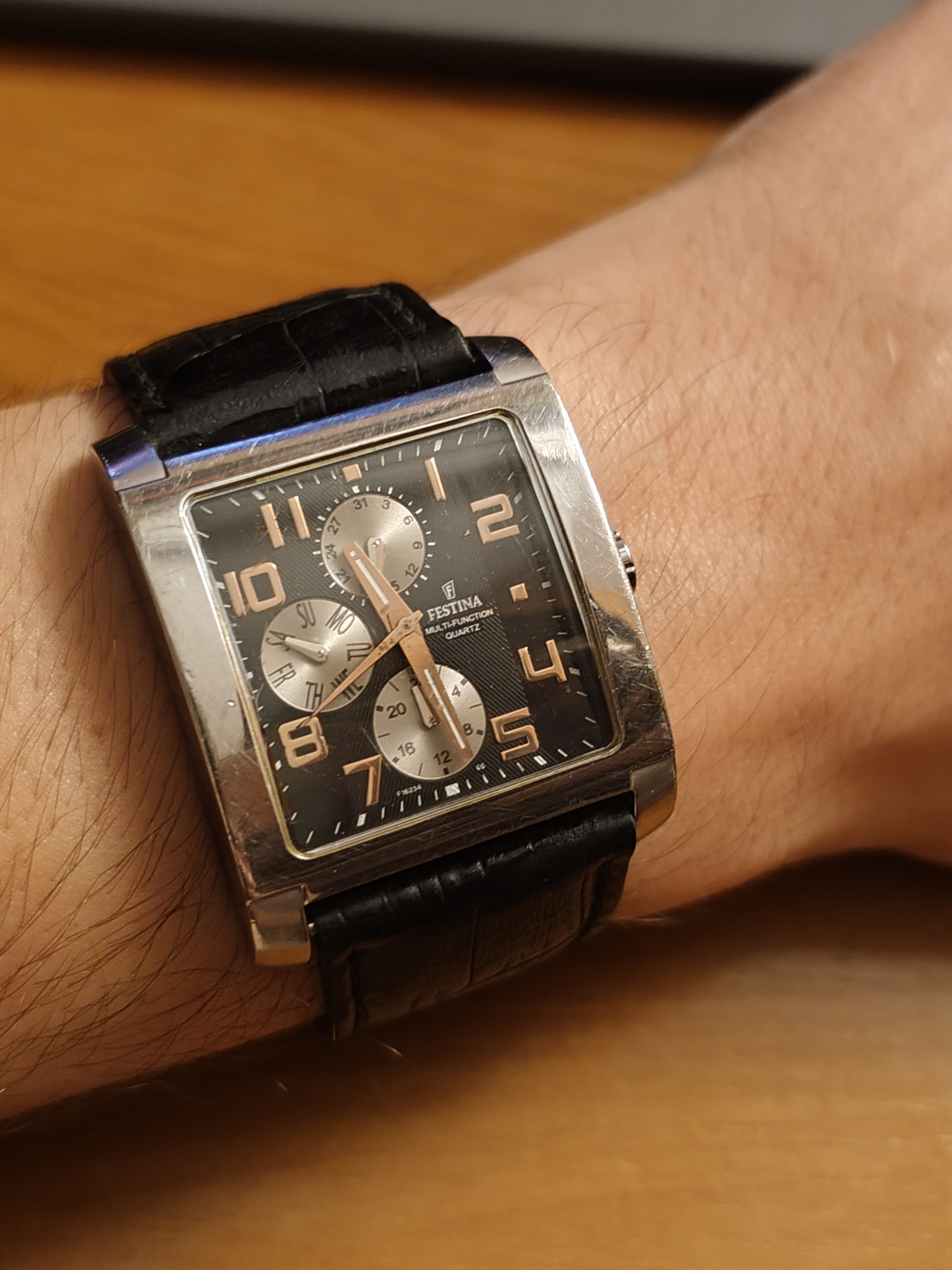 Ένα ρολόι που απέκτησα το 2019, ψάχνοντας για ένα απολύτως κλασικό dress watch. Με είχε μαγέψει το sunburst silver dial και το πολύ ποιοτικό λουράκι, αλλα΄δυστυχώς παρέβλεψα ότι για τον καρπό μου τα 42mm σε αυτή την κάσα είναι πολλά, με αποτέλεσμα να το έχω φορέσει 5 φορές. Πολύ ποιοτικό  ρολόι (αν και quartz βέβαια) παρόλα αυτά. Θεωρείτε ότι είμαι υπερβολικός που το θεωρώ μεγάλο για τον καρπό μου;(Κάντε κλικ εδώ να εμφανιστεί η φωτογραφία.)
