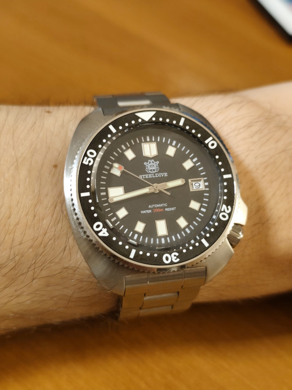 Ευχαριστώ πολύ όλους! @Makis2020 εσύ ειδικά που απ' ό,τι θυμάμαι είσαι του μεγάλου ρολογιού θα το χαρείς ακόμα περισσότερο από μένα. Με εξέπληξε ευχάριστα η κατασκευή του, δεν το περίμενα τόσο στιβαρό, αν και για να είμαι ειλικρινής θα το ήθελα ελαφρύτερο (καταλαβαίνοντας βέβαια πως αυτό ενδεχομένως να μην είναι εφικτό για το συγκεκριμένο ρολόι). Είναι που γενικώς δεν είμαι τόσο του καταδυτικού. Το κεραμικό bezel επίσης γυρνάει ωραία. Το μπρασελέ δεν είναι και τέλειο, αλλά απ' ό,τι είδα για ρολόγια τέτοιας κατηγορίας (90€ το πήρα) είναι απ' τα καλύτερα, με το κλασπ του να ξεχωρίζει. Να πούμε επίσης πως πρόκειται για το Steeldive SD1970 για όποιον θέλει να το ψάξει, homage --ή καλύτερα clomage-- του Seiko 6105-8110 Captain Willard, το οποίο όμως έβγαινε μόνο με λουρί σιλικόνης και όχι με μπρασελέ, όπως αυτό.