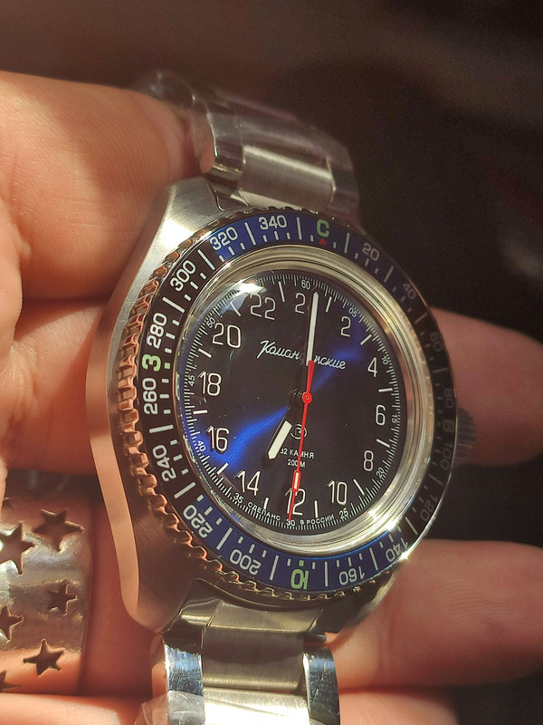 (Κάντε κλικ εδώ να εμφανιστεί η φωτογραφία.)(Κάντε κλικ εδώ να εμφανιστεί η φωτογραφία.)(Κάντε κλικ εδώ να εμφανιστεί η φωτογραφία.)Πρώτα από όλα μου έκανε εντύπωση το κουτί, περίμενα τα κλασσικό πλαστικό. Μετά μου έκανε εντύπωση το μπρασελε, δείχνει αρκετά ποιοτικότερο από ότι μας έχει μάθει μέχρι τώρα η vostok.Ειναι το μοναδικό vostok από όσα έχω μέχρι τώρα που δεν θέλω να του αλλάξω τίποτα. Το μόνο που με ανησυχεί λίγο είναι θα είναι το αν θα συνηθίσω την 24ωρη ένδειξη ώρας.