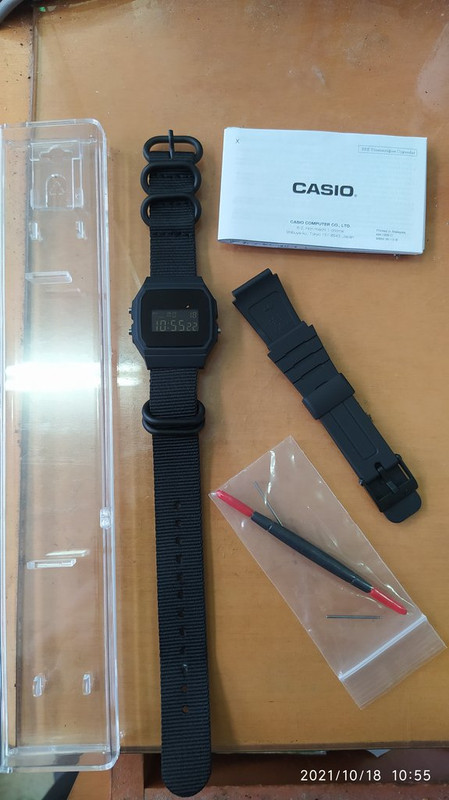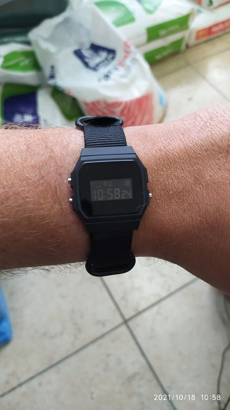 Το ρολογάκι (κυριολεκτώ στο υποκοριστικό) κόστισε 25 ευρώ περίπου συν 9 ευρώ μεταφορικά συν 20% φόρο στο σύνολο του ποσού δηλαδή στα 34 ευρώ. Άρα μαζί με το ΦΠΑ έπιασε τα 45 ευρώ. Στο φάκελο ο αποστολέας είχε δηλώσει αξία 10 και έτσι το τελωνείο κόστισε 2,5 ευρώ. Το δέμα περιέχει το παρακάτω(Κάντε κλικ εδώ να εμφανιστεί η φωτογραφία.)Ένα απλό F91-W με μαύρο NATO, καινούριο τζαμάκι μαύρο και black mod στην οθόνη. Θα το έλεγα συμπαθητικό αν και αρκετά μικρό.Βέβαια με την αλλαγή στην οθόνη λογικά έχει χάσει και όποια αντοχή σε νερό είχε αλλά δε με πειράζει.(Κάντε κλικ εδώ να εμφανιστεί η φωτογραφία.)