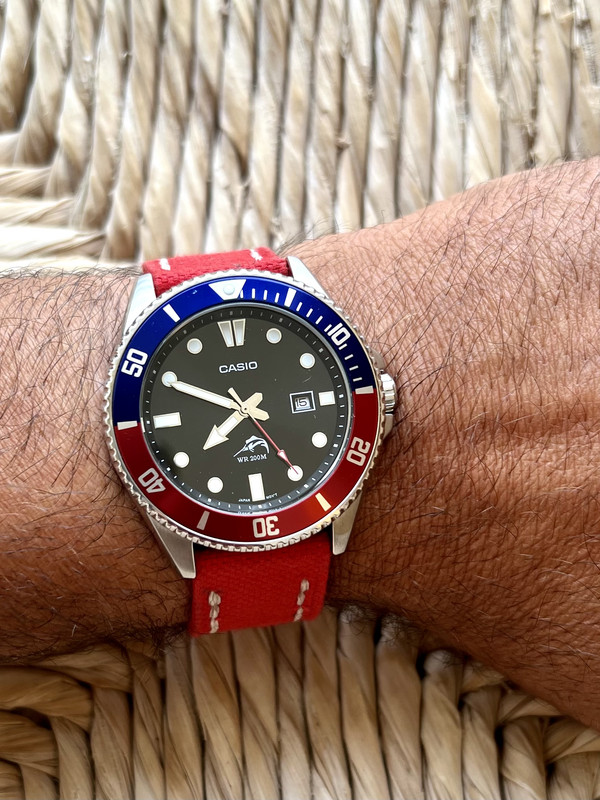 Δοκίμασα διάφορα ΝΑΤΟ, το μαύρο του πάει πολύ, αλλά περισσότερο μου αρέσει το κόκκινο canvas προς το παρόν. Το Pepsi bezel περιορίζει τους χρωματικούς συνδυασμούς.