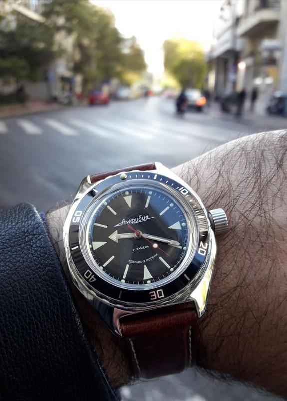 Λοιπόν, η καθεμιά έχει τα μειονεκτήματά της, γι αυτό θα σου πω ότι καμία δεν με καλύπτει απόλυτα. Το γενικότερο πρόβλημα με τις σύγχρονες κάσες Vostok, όμως, ξεκινάει από το μέγεθος του... dial! Και θα σου εξηγήσω τι εννοώ. Οι σχεδιαστές της Vostok, πηγαίνοντας με το πνεύμα της εποχής, προσπάθησαν να σχεδιάσουν μεγαλύτερες κάσες έχοντας ωστόσο έναν περιορισμό: να κρατήσουν την ίδια διάμετρο στο καντράν, για ευνόητους λόγους. Το αποτέλεσμα ήταν να επιτύχουν μεν ένα καλύτερο "wrist presence", αλλά οι κάσες να μη δείχνουν αρμονικές σε συνδυασμό με το καντράν και το μπέζελ. Ωστόσο, όλες μπορούν να δείξουν καλύτερες εάν τις συνδυάσεις με το κατάλληλο μπέζελ. Ας πάρουμε για παράδειγμα το Doxa. Είναι πανέμορφο κι ας έχει πολύ μικρό dial σε φαρδιά κάσα. Όλη την αρμονία τη δίνει το καλοσχεδιασμένο bezel και η τολμηρή απόσταση από το τελείωμα της κάσας: