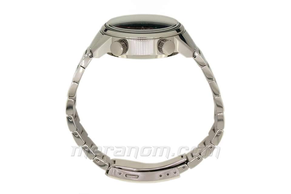Μαύρος δίσκος ημερομηνίας, άσπρος δείκτης δευτερολέπτων ( αντί για κόκκινο), clean bezel και scuba dude caseback.