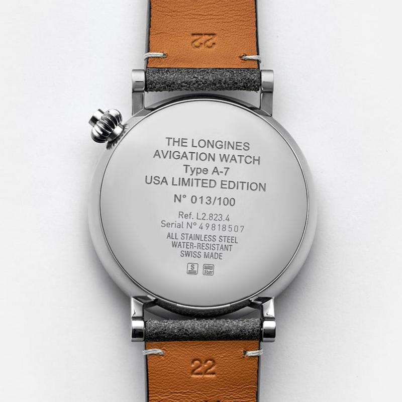 On the back, the watch is engraved “The Longines Avigation Watch Type A-7 USA Limited Edition”