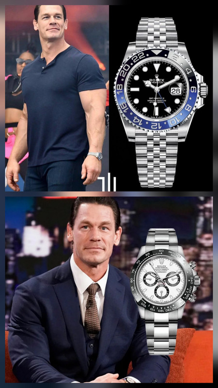 Ο John cena έχει 2 ρολόγια συνήθως μαζί του...  ένα ρολόι τσέπης και ενα χειρός..! Αυτό στον καρπό του είναι για να του δείχνει την ώρα ενώ το άλλο για να του θυμίζει τις αξίες του. Πιο συγκεκριμένα αναγράφει στην μια πλευρά "comparison is the thief of joy" ενα απο τα κλειδιά της ευτυχίας κατα την γνώμη μου...  και στην άλλη πλευρά "mento mori".. για να προσγειωνεται όταν το εγώ του φουσκώνει...! Η μια πλευρά για την αυτοεκτίμηση και η άλλη για την ταπεινοτητα...!