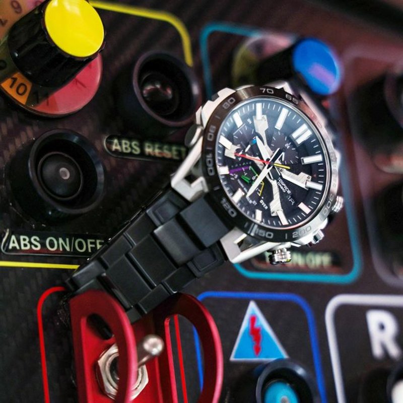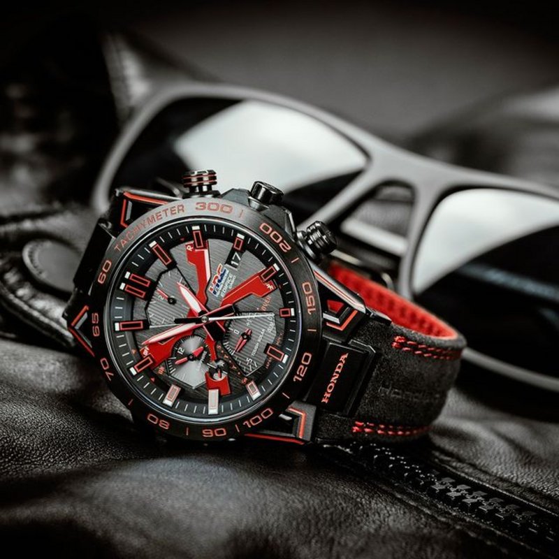 Motorsport watch by day, fashionable chronograph by night. The Honda Racing Red Edition EQB-2000HR
