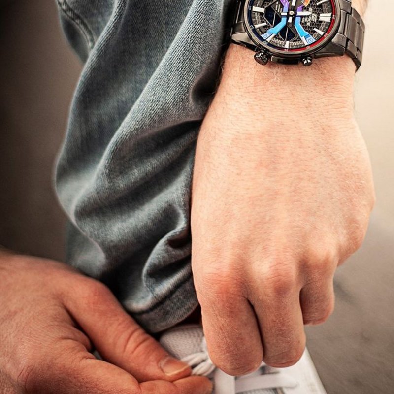 €129 Sapphire crystal Screwed back Solid strap Material: Stainless steel Width with crown: 45mm (Probably 41-42mm without crown)