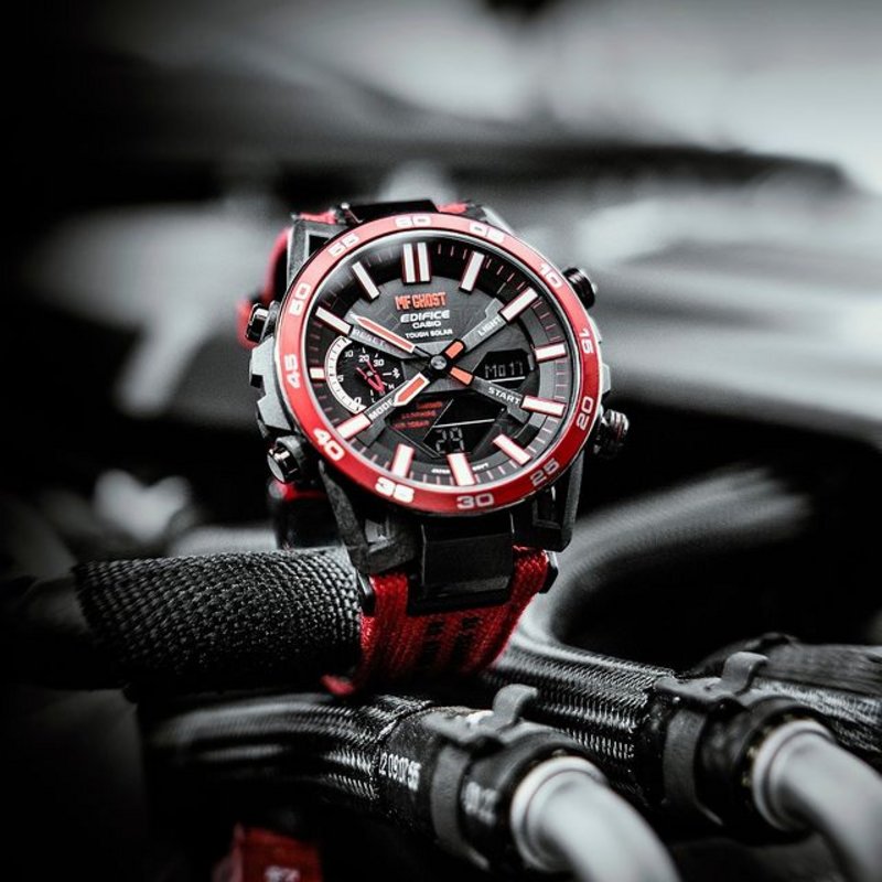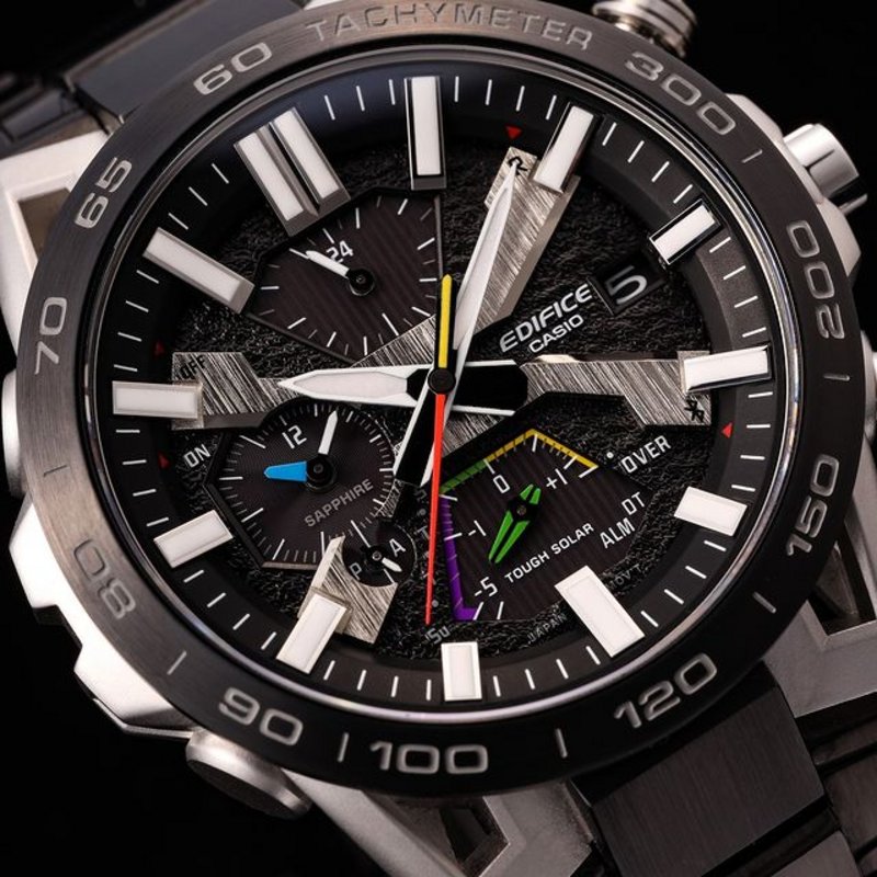 The EQB-2000DC Sospensione's all-black dial and brightly coloured sub features were intentionally designed to guarantee optimal visibility for racing teams