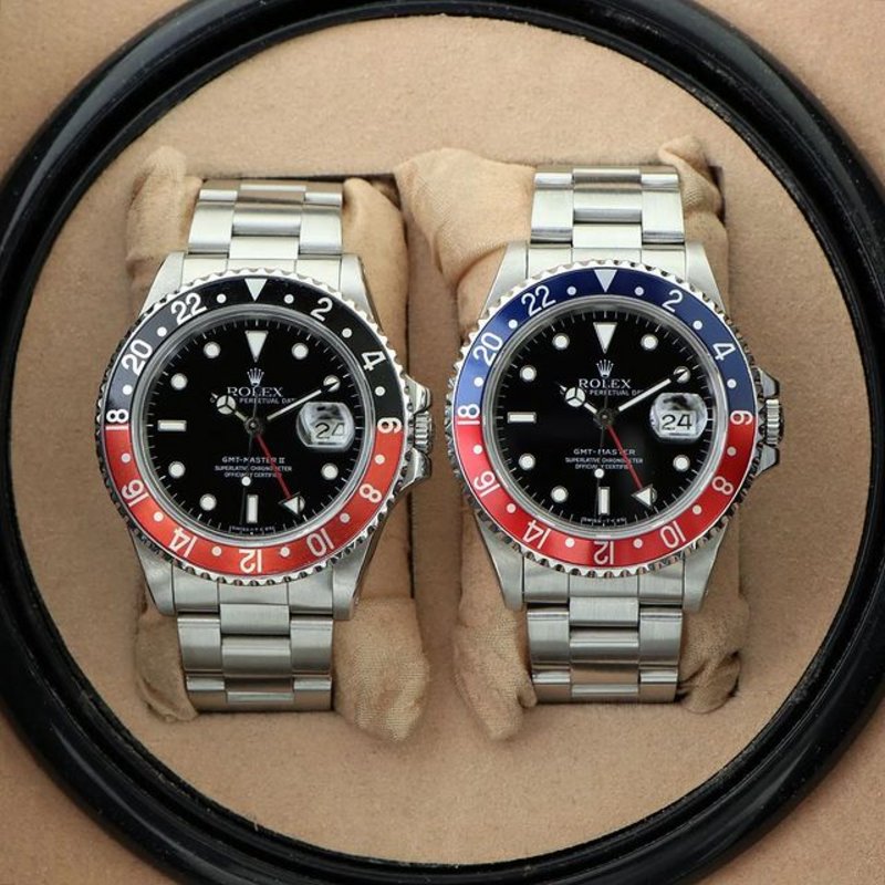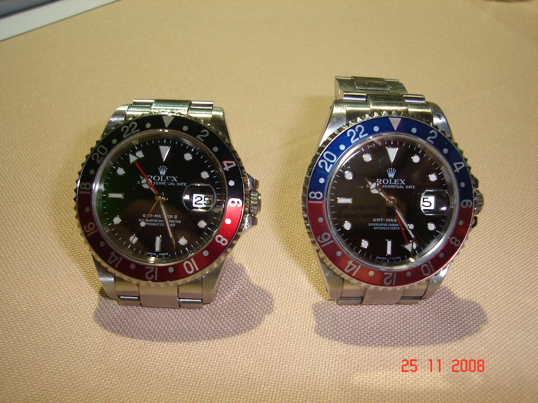 Τα εικονιζόμενα, είναι 5-άρια, το δεξί, είναι το 16700, που είναι το σκέτο GMT MASTER, και το αριστερό, το αντιστοιχο νεώτερο ( αν και είχαν και παράλληλη σταδιοδρομία ), GMT MASTER II. Με ανεξάρτητη κίνηση του δείκτη GMT από τον δείκτη ώρας.