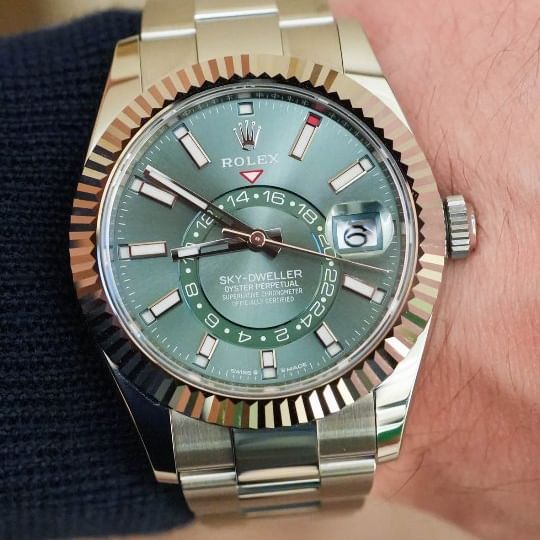 Oystersteel & white gold Sky-Dweller Ref. 336934, fitted with a mint green dial