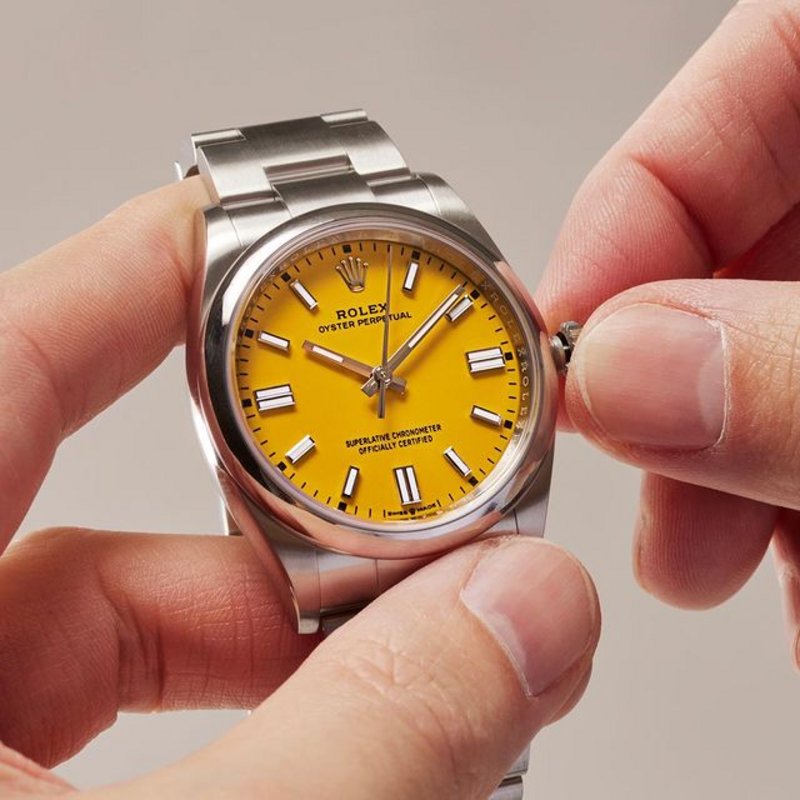 The movement of course benefits from the latest technologies of Rolex, including its patented Chronergy escapement with its efficient geometry. Made of nickel-phosphorus, this escapement is resistant to magnetic fields and is combined with a blue Parachrom hairspring made from a paramagnetic alloy. It is equipped with a Rolex overcoil, and the oscillator is mounted on Paraflex shock absorbers. Featuring a column wheel and vertical clutch, automatic winding with a newly designed rotor on an (upgraded) ball bearing, it can store 72h of power reserve. Visible though the caseback, it has the new decoration with Rolex Côtes de Genève and a yellow gold rotor.