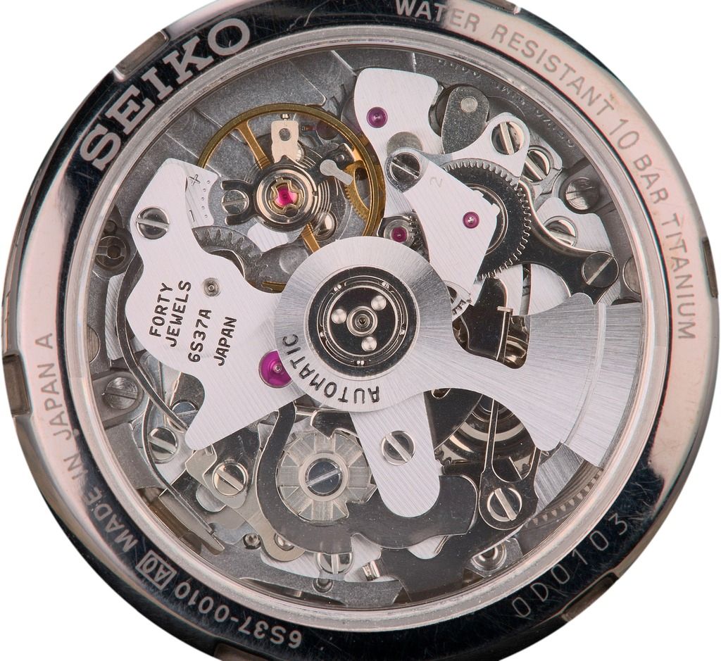 There's a picture with a reduced rotor for clarity. You can see it uses Seiko's high end "flower" shock and it also has an etachron fine adjustment screw. It's also rated for substantially better accuracy (they did make a cheaper, simpler, lower accuracy version as well, and higher end hand wound versions) out of the box. It's an older movement design, if that makes any difference to you.