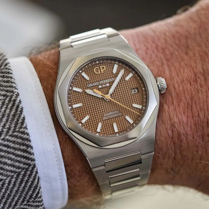 A quick look at the latest @girardperregaux Laureato, here with a Copper dial and a smaller case. This marks a return of the 38mm size for the Laureato, yet upholds the proportions of GP's sports watch family