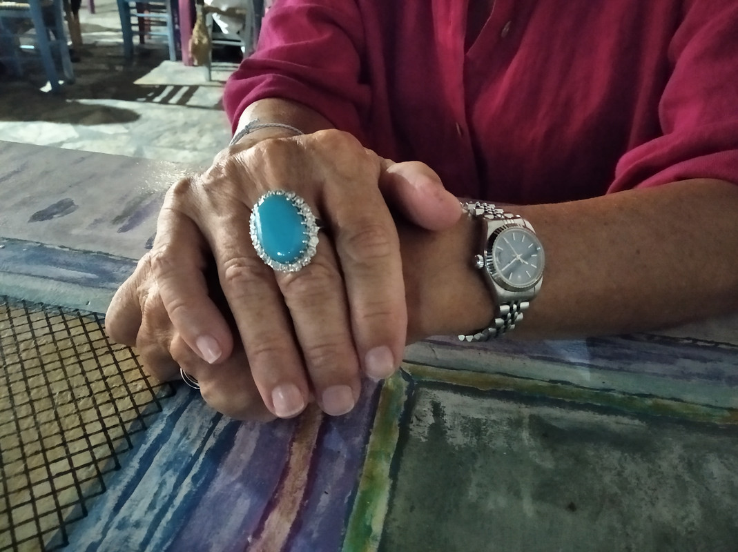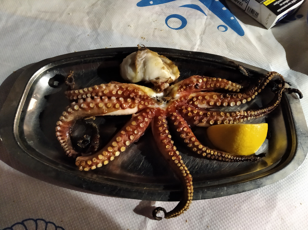 Οσο απίστευτο και να ακούγεται, ( ίσως κάποιοι τον ξέρουν ), είναι ΜΟΝΟΣ του στο μαγαζί. Μαγειρεύει θαλασσινά, χταπόδια - καλαμαράκια - γούνες - σαρδέλλες - γαύρο, κλπ, σαλάτες από το μποστάνι του, σερβίρει - μαζεύει τραπέζια, εξυπηρετεί, ( χθές ήταν γύρω στα 40 άτομα ), επαναλαμβάνω, ΜΟΝΟΣ του.