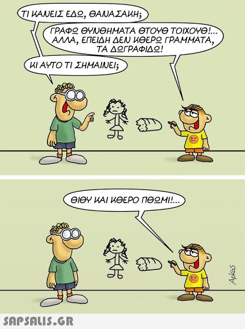- Μα τα έχετε γεμίσει σάλια, της λέει η σύζυγος.