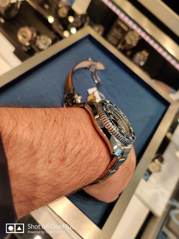 Επίσης το ΡΟ δεν μου αρέσει καθόλου με ΝΑΤΟ. Είναι ένα παχύ ρολόι και κυρίως έχει πάχος πέρα από τα lugs (το πίσω καπάκι) με αποτέλεσμα να κρεμάει. Επίσης το ΝΑΤΟ της Ω διπλό. Οποτε πας για μπρασελέ δαγκωτό έξτρα.