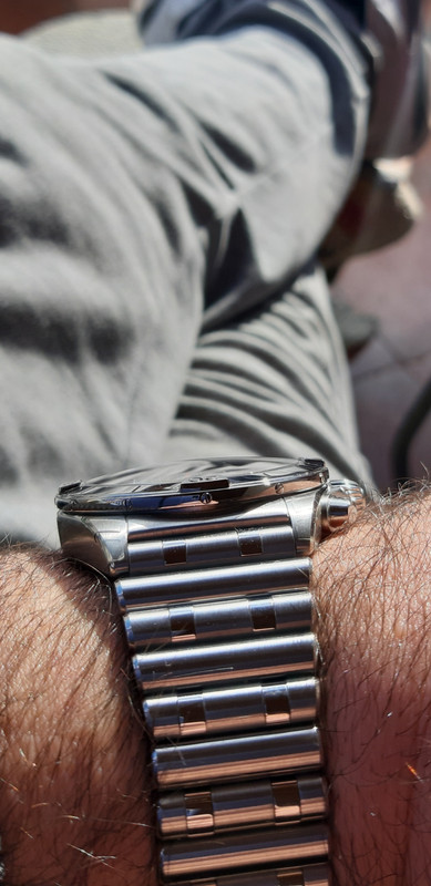 Επειδή το έχω το ρολόι και το πάχος του ήταν το μόνο που με προβλημάτιζε πριν την αγορά ( αν και τα 15mm δεν είναι τραγικά) σε διαβεβαιώ πως στον καρπό δε τα δείχνει καθόλου !! Κάθεται άψογα