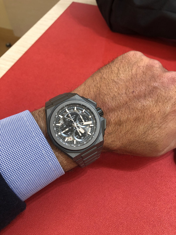 Καταρχάς ο νέος χρονογράφος είναι ποίημα. Στις φωτό χάνει πολύ. Αν και 43,5 κοιτάξτε πόσο ωραία κάθεται στον καρπό λόγω μικρών lugs.
