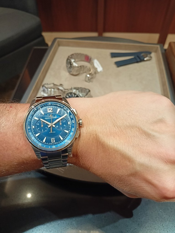 Εχθές πήγα στη JLC, είχα μια ωραία εμπειρία αλλά δεν ένιωσα και κάτι το ξεχωριστό. Κατ'αρχάς τα περισσότερα ρολόγια τους τα γνωρίζω, τα έχω δοκιμάσει και φορέσει. Από τα απλά ως (ακόμη περισσότερο) τα βαριά κομμάτια, Duometre, Master Cylindrique Tourbillion κλπ. Πιό πολύ τα βαριά έχω δοκιμάσει, κι όχι αυτά τα απλά τα dressy.
